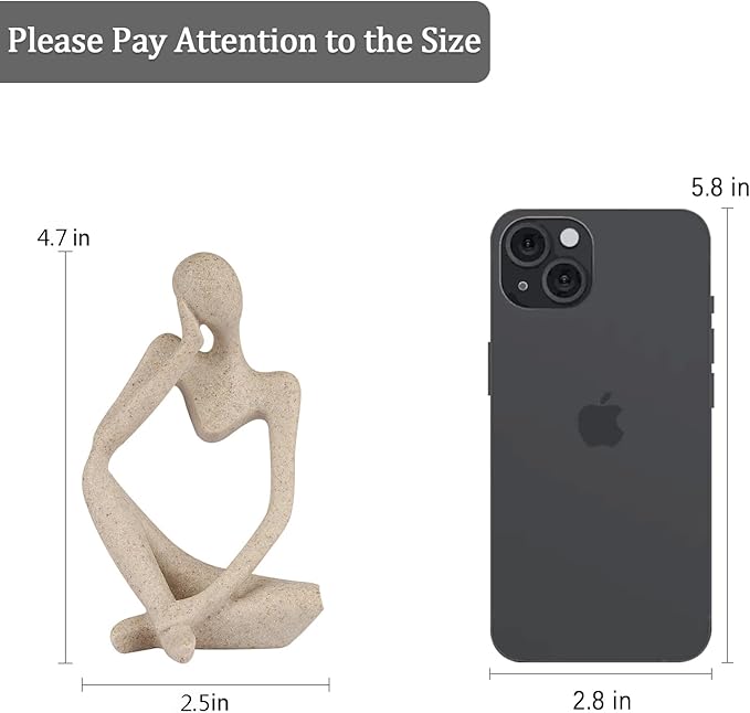 Sandstone Resin Thinker Style Abstract Sculpture Statue Collectible Figurines Home Office Bookshelf Desktop Decor(Small Sandstone,Left)